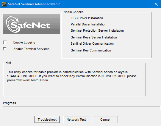 Thales (formerly SafeNet), the manufacturer of the hardware protection key used for PcVue, provides a diagnostic tool (Sentinel Advanced Medic) for use if you encounter a problem or wish to check the protection status of any computer running Windows. It provides information on the Sentinel system driver and the key limits for both and parallel port keys. The tool is provided on the PcVue distribution media in the form of a self-extracting executable.