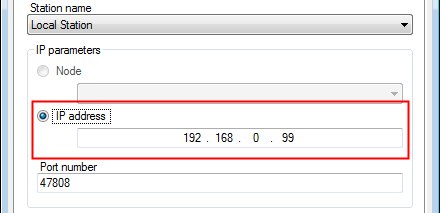 OR - If configuring a standalone application enter the IP address of the local station in the IP address field. The Node field is not used.
