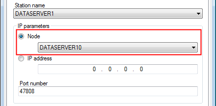 - If configuring a networked application select a node of the chosen networked station, or provide the IP address of the network interface on the station.