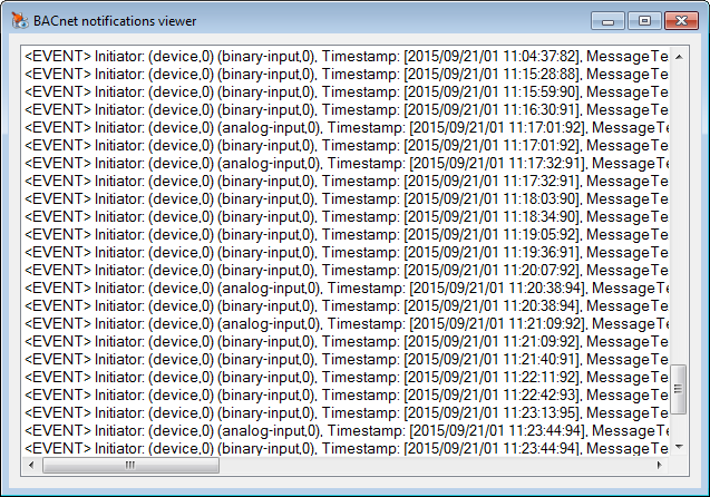 - For bit or alarm variables mapped to a BACnet event for the source object (such as a binary or an analog objects) in the same device as the Notification Class: