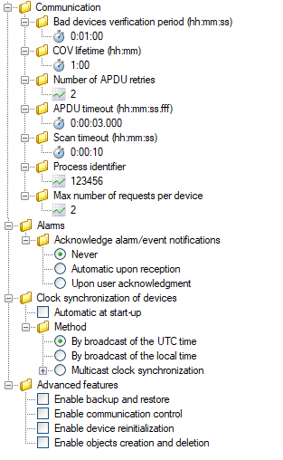 - Clock synchronization of devices - The method used to synchronize the clock of BACnet devices.