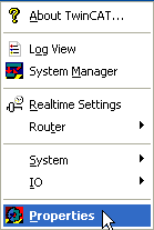 - Right-click on the TwinCAT icon and select Properties to open the TwinCAT System Properties dialog.
