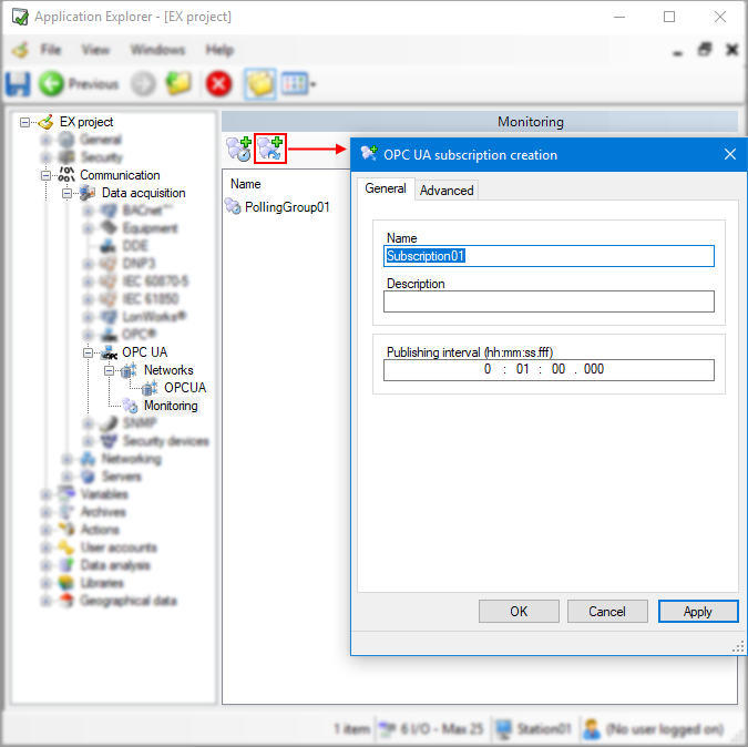 OPC UA Subscription advanced properties