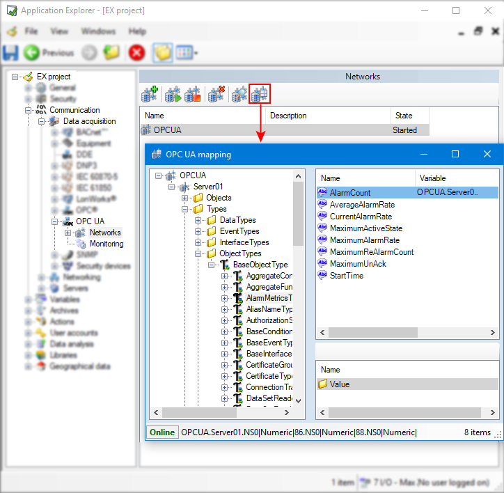 Expand the OPC UA node, then click Networks. The OPC UA networks configured appears on the right pane.