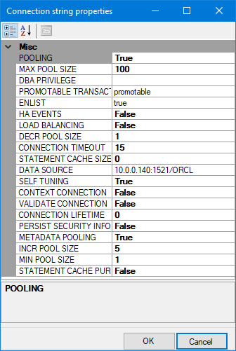 As an example, here is the list of properties for SQL Server Show picture or Oracle