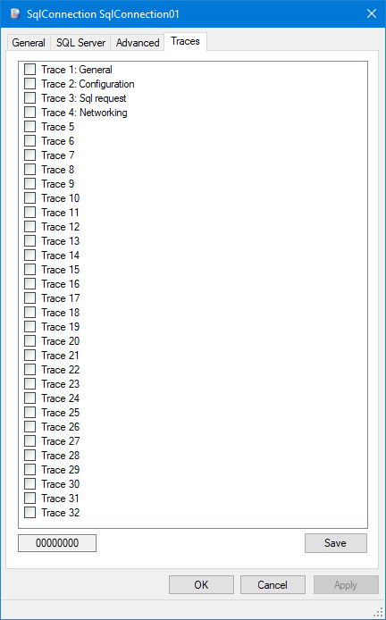 The Traces tab allows you to enable diagnostic trace messages. Each trace generates specific messages that are logged in the Trace Files and displayed in the Event Viewer dialog (F7). The following screen shot was taken with the default configuration. Show picture