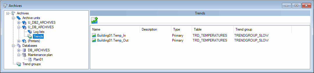 - Variables have been added to the archive unit's Trends folder with the Primary option selected.