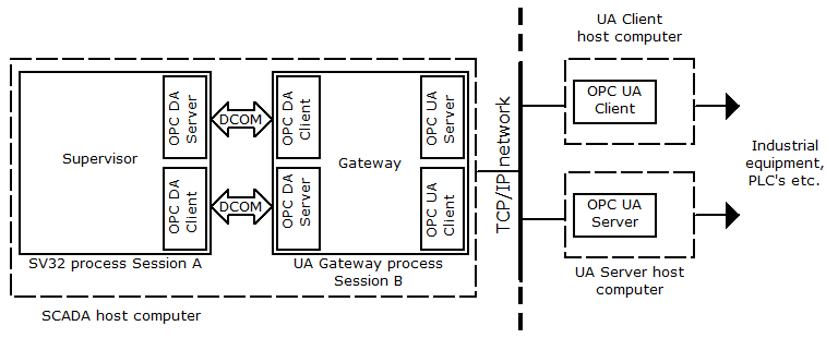 The OPC UA gateway is used as a bridge between the PcVue OPC DA client and server and third party OPC UA clients and servers. It enables the use of PcVue as an OPC UA client or OPC UA server for Data Access.