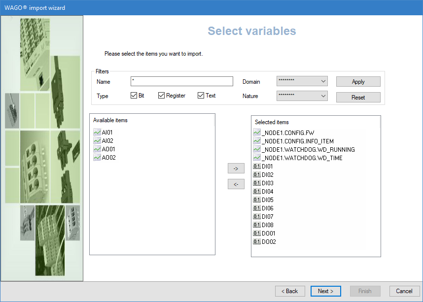 Go to Configure then Smart Generators and click New WAGO import. The WAGO Smart Generator dialog opens.