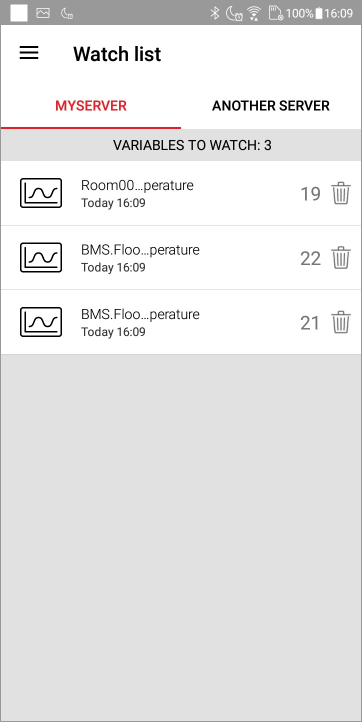- Tapping the Trash Can icon adjacent to a variable removes it from the watch list.