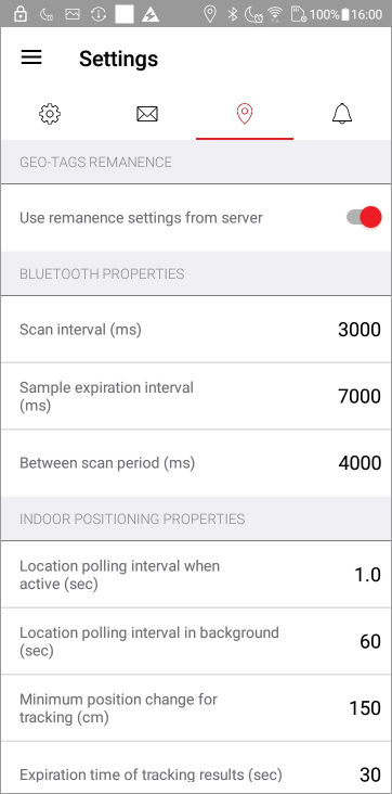 - Scan interval - The continuous period, in milliseconds, during which Bluetooth beacons are scanned for.