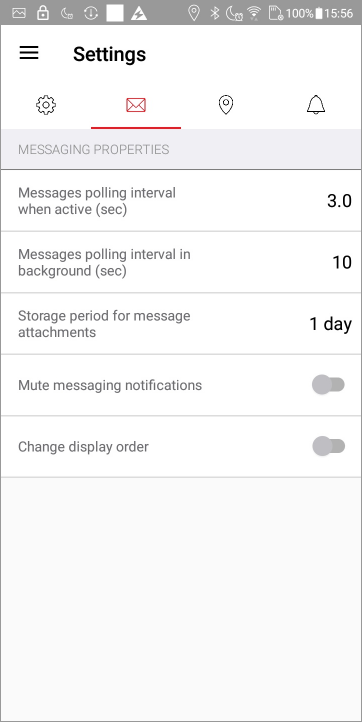- Messages polling interval when active - Rate in seconds at which the update requests are made to the messaging server when the app is in the foreground.