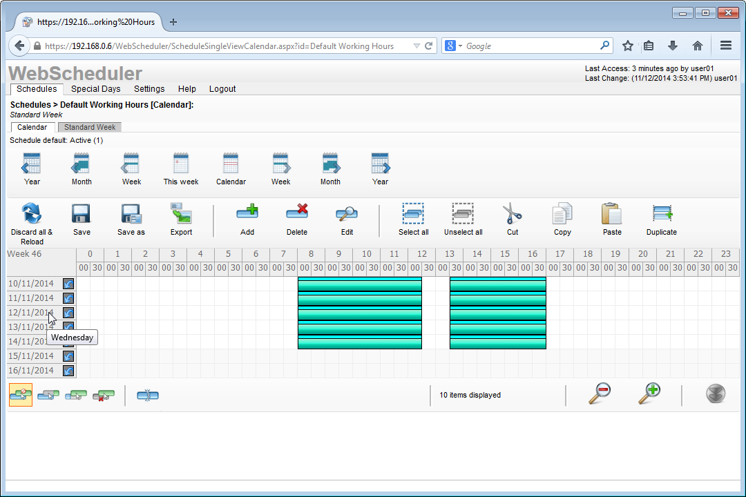 The WebScheduler is a Web Browser based application for managing the schedules that you find in typical applications such as BMS. It is designed to manage schedules from multiple sources and present them in a uniform manner no matter what equipment or field device driver are used.