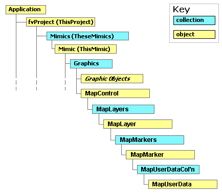 The MapControl is sub-ordinate to the Graphics collection but because it has a complex structure it is shown as a separate tree for the purpose of this topic.