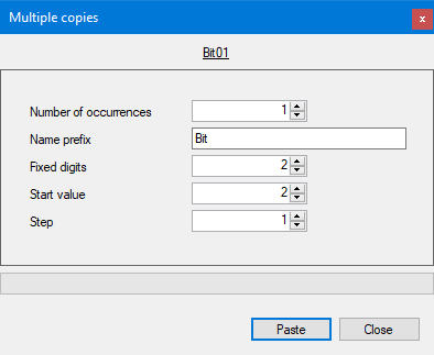 - Right click the location in the configuration tree where the object is to be pasted and, from the context menu, select Multiple paste. The Multiple Copy dialog opens.