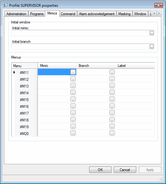 - Initial window - Selection of a window that opens automatically when a user logs in. The window may also be opened using the substitution #U in a Link-Open animation.