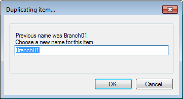When you paste the variable, only the variable name is used - the branch is not included. A dialog will open suggesting a name for the duplicated variable.