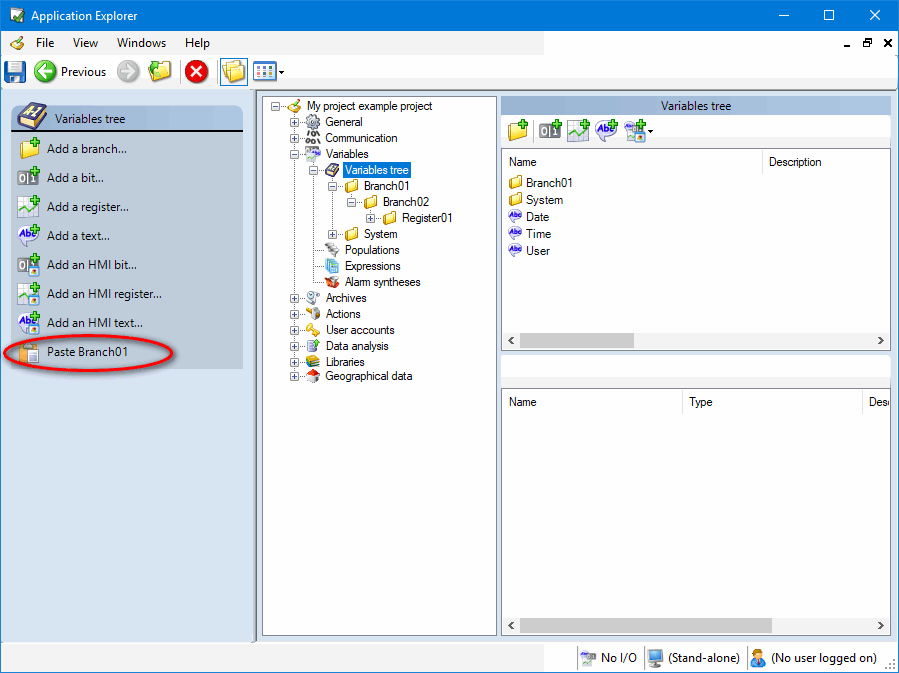 If you use cut and close the Application Explorer before using paste, the variable or branch that you have cut is not deleted.
