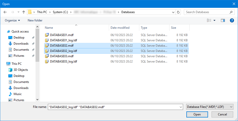 - When you have selected the database files, click on Open.