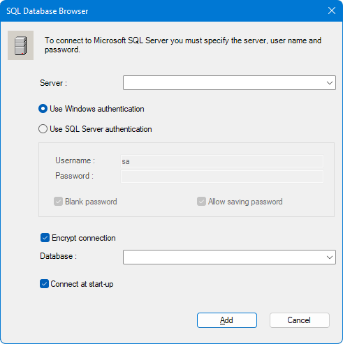 To indicate that the application uses Windows Authentication for logging on to the SQL Server database. Username etc. below are grayed out for this default option. |