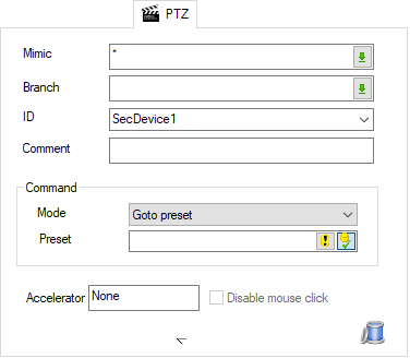 Goto preset - The Preset property can either be a string which is the name of the preset, or the name of a text variable which contains the name of the preset.