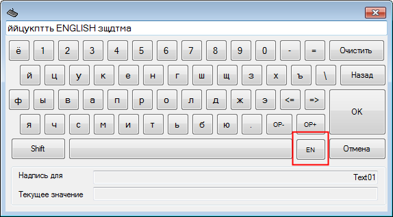 If you choose to display the alphanumeric keypad in any language other than English, an extra key is provided to select an English keyboard. This is to allow the user to enter a mix latin and non-latin characters. For example, you may want to enter the name of an instrument or an identifier using latin characters in the middle of a Russian phrase.