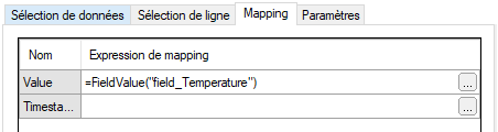 Dans l'onglet Mapping, la valeur et l'horodate sont mappées.