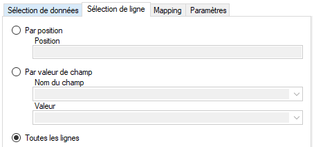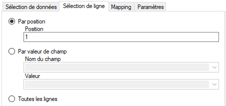 Dans l'onglet Sélection de ligne, la ligne est sélectionnée en tant que Par position.