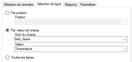 Nous voulons mapper la variable @Température aux données du champ field_Name dans la ligne qui contient "Temperature".