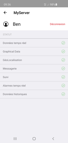 À partir de la vue Statut, vous revenez à la vue Comptes à l'aide du bouton flèche retour.