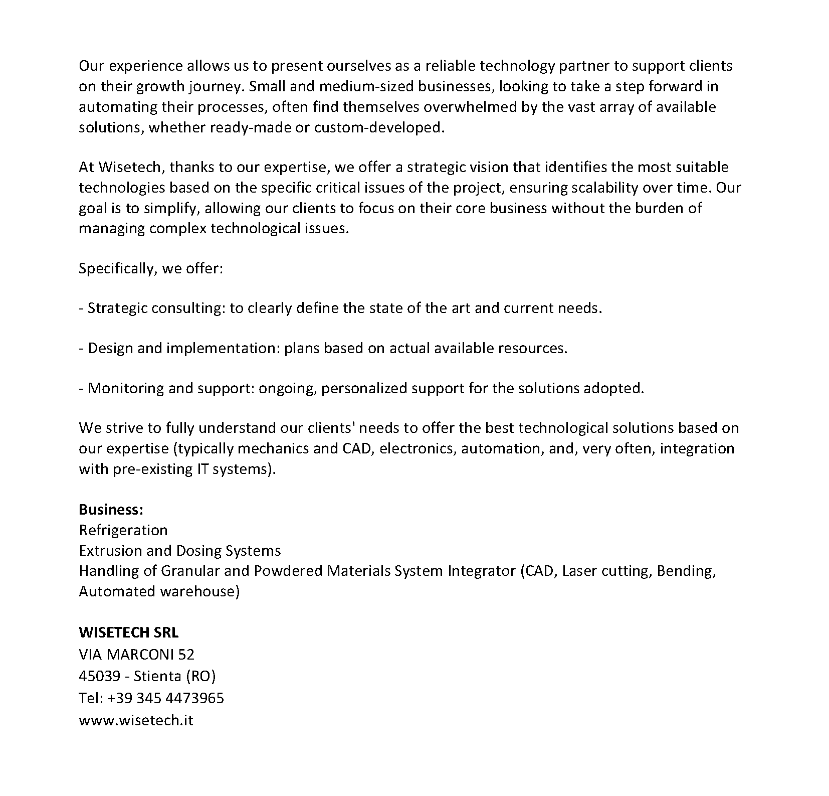 | Certified System Integrator | SWOH, LLC | 8781 Harper Point Dr. Cincinnati, OH 45249 Tel: 513 295 3828 | USA | |