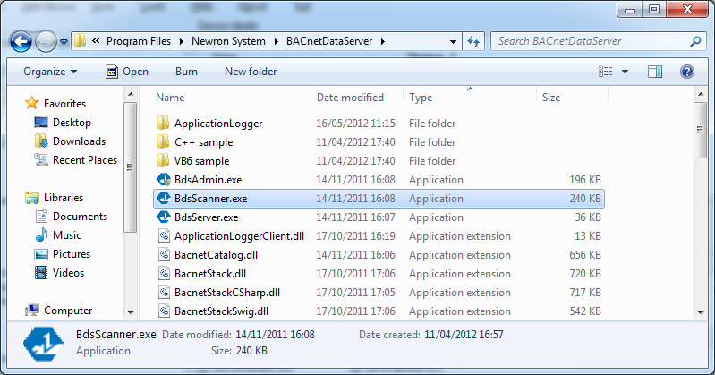 The BACnet Data Server Scanner is the tool used to scan the BACnet network and discover all devices connected to it. 1. To use it, go to C:\Program Files\Newron System\BACnetDataServer folder and choose BDSScanner.exe. 2. After configuring the BACnet network settings, launch the scan by clicking on “Scan” button. 3. Once the scanner has discovered the connected devices and their content, you can save the configuration by clicking on the “Save” button. 4. You have generated a bndf file which contains all elements that you have scanned. You can re use this file in another PcVue project by changing the name and the extension of the file and insert it in the “C” folder. NOTE The structure of the file name depends of the PcVue version. The following table describes the naming rules.
