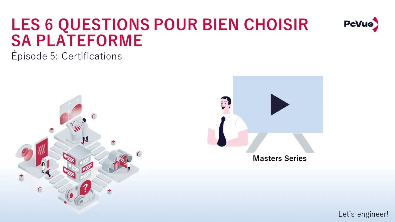 PcVue Solutions Master Series SERIE1 : Les 6 points pour bien choisir sa plateforme Episode 5 : Certifications Des mini-séries qui vous informent sur…